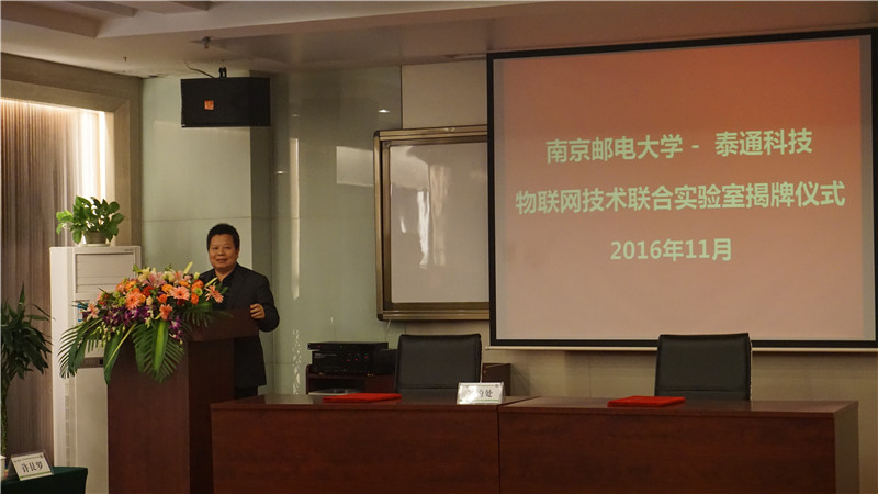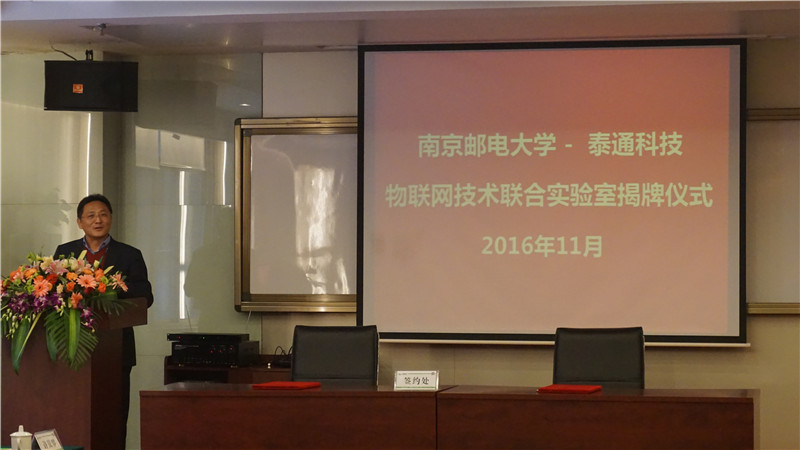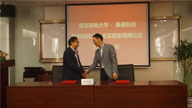 揭牌儀式上泰通科技總工程師陳建平與南京郵電大學(xué)通信技術(shù)研究所副所長(zhǎng)楊龍祥進(jìn)行了現(xiàn)場(chǎng)簽約,朱校長(zhǎng)和吉總共同為“物聯(lián)網(wǎng)聯(lián)合實(shí)驗(yàn)室”揭牌。